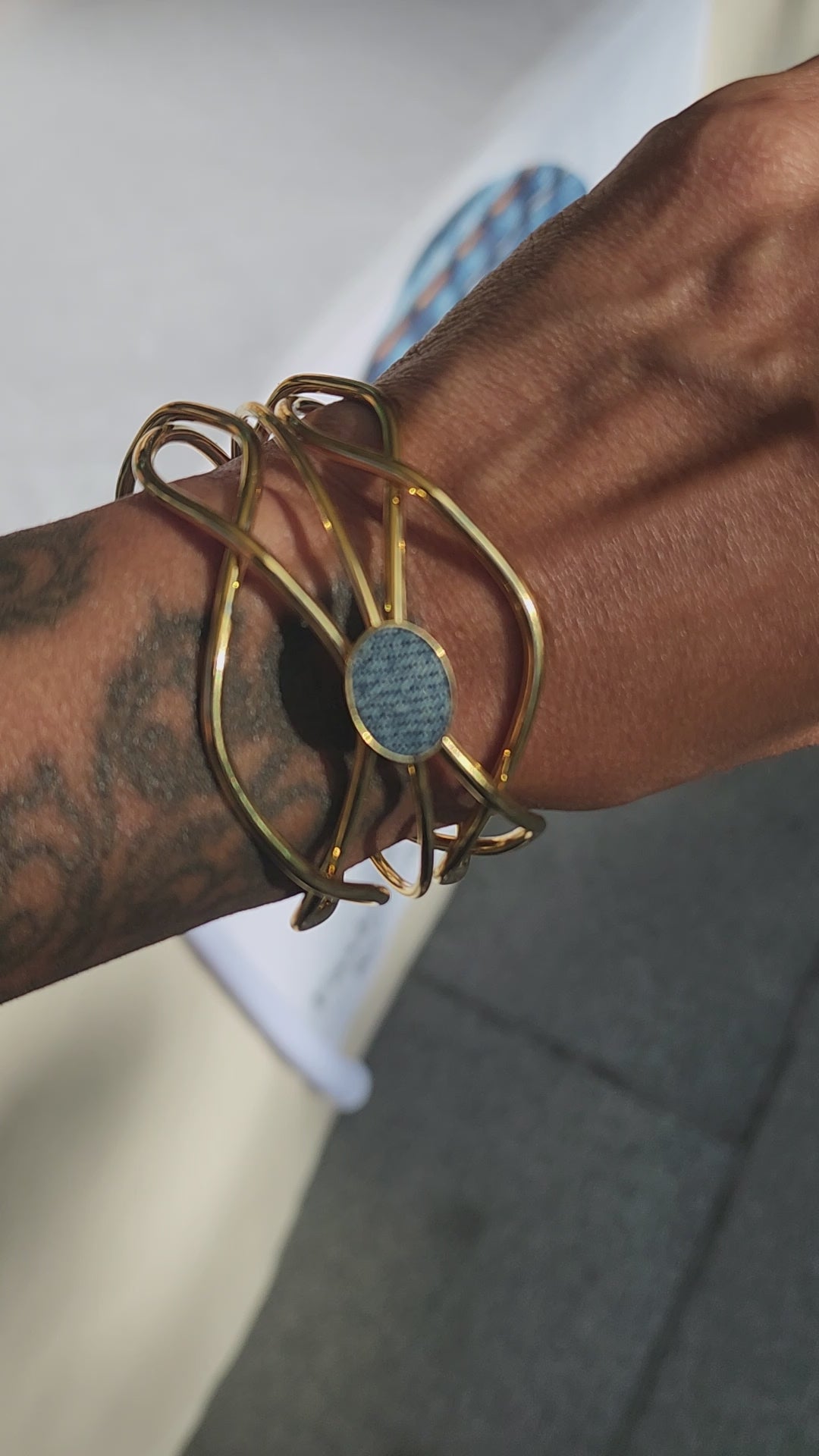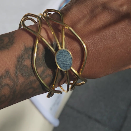 Denim Bracelet- Gold Stainless Steel scrambled Wire jean cuff bracelet