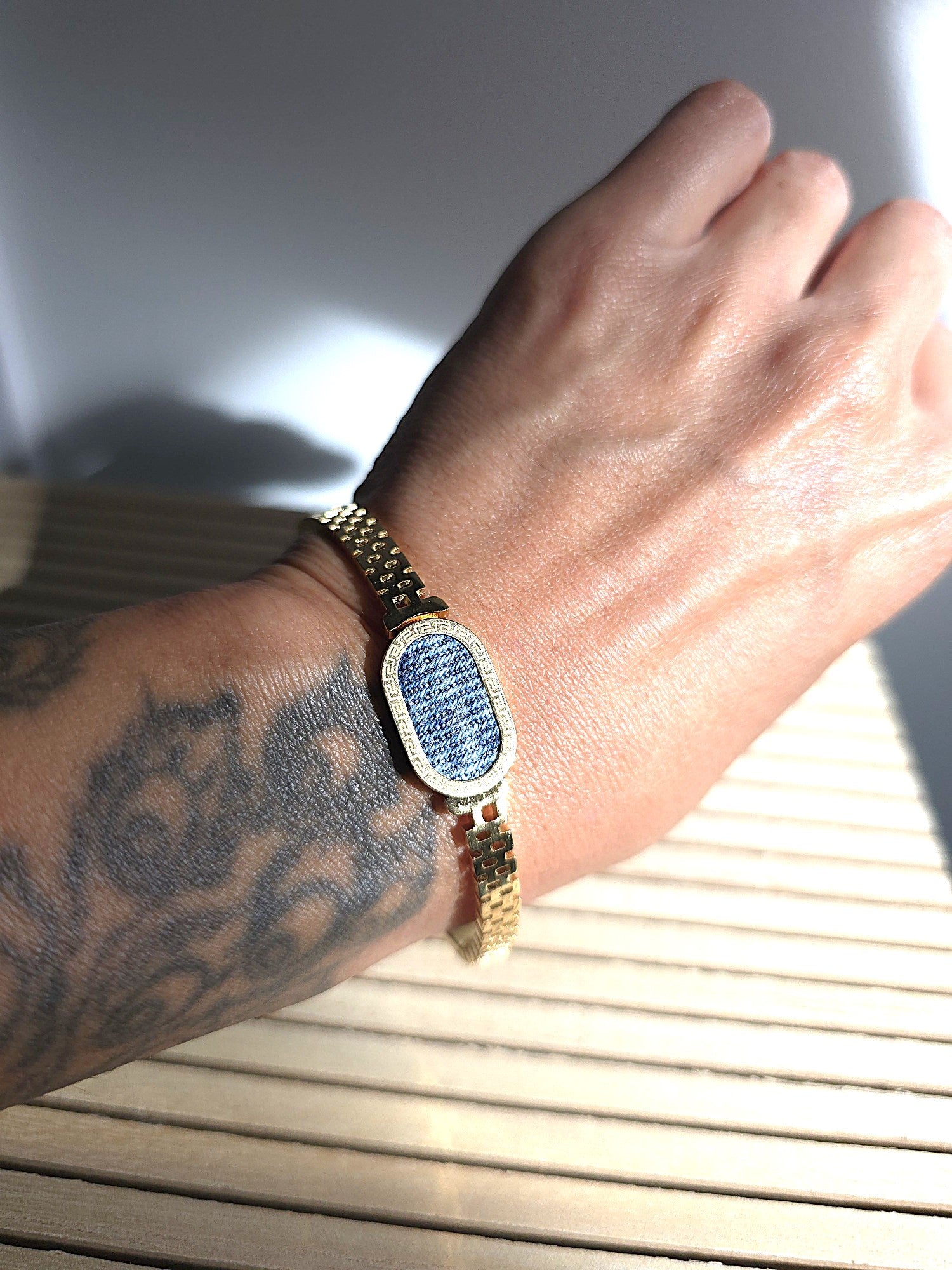 Denim Bracelet- Stainless steel 18K Gold oval jean link cuff bracelet
